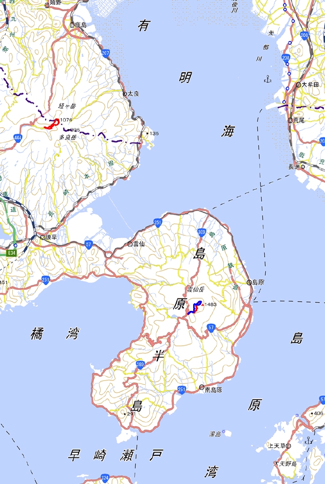 この噴火でできた溶岩ドーム「平成新山」が普賢岳(1359m)を越える1483mになり、長崎県最高峰(入山禁止)
